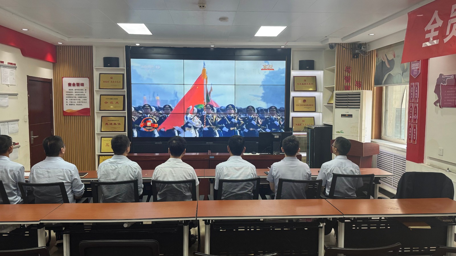 歷史燭照未來,精神永續(xù)傳承。為深切緬懷在抗日戰(zhàn)爭中英勇獻身的革命先烈,大力弘揚偉大的抗戰(zhàn)精神,引導(dǎo)全體黨員、職工銘記光輝歷史、堅定理想信念、強化責任擔當,9月3日,機運工區(qū)黨支部組織開展了“銘記歷史偉業(yè),傳承紅色基因”主題黨日活動,組織全體黨員集中觀看紀念中國人民抗日戰(zhàn)爭暨世界反法西斯戰(zhàn)爭勝利80周年閱兵儀式現(xiàn)場直播。上午九時整,機運工區(qū)全體黨懷著無比崇敬與激動的心情,目光齊聚屏幕。伴隨著激昂雄壯的國歌奏響,鮮艷的五星紅旗在天安門廣場冉冉升起,大家心潮澎湃,肅然起敬。隨后,規(guī)模宏大、氣勢磅礴的閱兵式正式開始。屏幕上,一個個整齊劃一、威武雄壯的徒步方隊,邁著鏗鏘有力、撼人心魄的步伐走過檢閱臺,堅毅的眼神、挺拔的身姿,充分展現(xiàn)了新時代軍人聽黨指揮的忠誠品格和能打勝仗的過硬本領(lǐng);一列列代表著國家科技實力與國防現(xiàn)代化建設(shè)最新成果的裝備方隊,鐵流滾滾,氣勢如虹,尖端武器依次亮相,彰顯了捍衛(wèi)國家主權(quán)、安全、發(fā)展利益的堅定決心與強大能力;雄鷹呼嘯,劃破長空,戰(zhàn)機編隊以精準的隊形和磅礴的氣勢接受檢閱,描繪出壯美的藍天畫卷,宣示著捍衛(wèi)國家領(lǐng)空安全的鋼鐵意志。整個閱兵過程,秩序井然、威武雄壯、氣勢恢宏,生動詮釋了人民軍隊“聽黨指揮、能打勝仗、作風優(yōu)良”的強軍目標,全方位展示了在黨的堅強領(lǐng)導(dǎo)下,國家日益強大的綜合國力和維護世界和平的堅定信念。屏幕前,黨員們?nèi)褙炞ⅲ瑹o不被這震撼人心的場面所感染,民族自豪感與榮譽感油然而生,現(xiàn)場不時響起由衷的贊嘆和熱烈的掌聲。通過本次“銘記歷史偉業(yè),傳承紅色基因”主題黨日活動,機運工區(qū)黨支部全體黨員經(jīng)歷了一次深刻的精神淬煉與思想升華。大家的歷史使命感、民族自豪感、崗位責任感得到顯著增強,紛紛表示以更加飽滿昂揚的精神狀態(tài)、更加求真務(wù)實的工作作風、更加開拓創(chuàng)新的進取意識,恪盡職守,銳意進取,全力以赴保障原煤運輸安全高效,為工區(qū)及公司的持續(xù)高質(zhì)量發(fā)展貢獻全部力量!